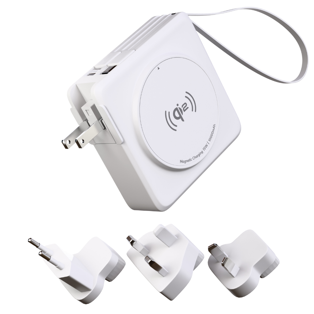 The built-in wall plug lets you recharge the power bank directly from any outlet — perfect for travel and everyday use.